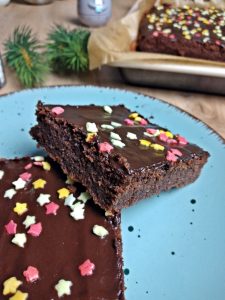 Lebkuchen kann es bei mir in der Weihnachtszeit gern in Hülle und Fülle geben. Warum also nicht auch als Blechkuchen, dachte ich mir. Drum gibt es hier heute von mir einen Lebkuchen auf dem großen Bachblech mit einer Zartbitterschokoladenglasur und ein paar Streusel. Was für ein Anblick!
