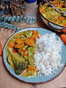 Reis mit Kokos-Gemüse-Curry