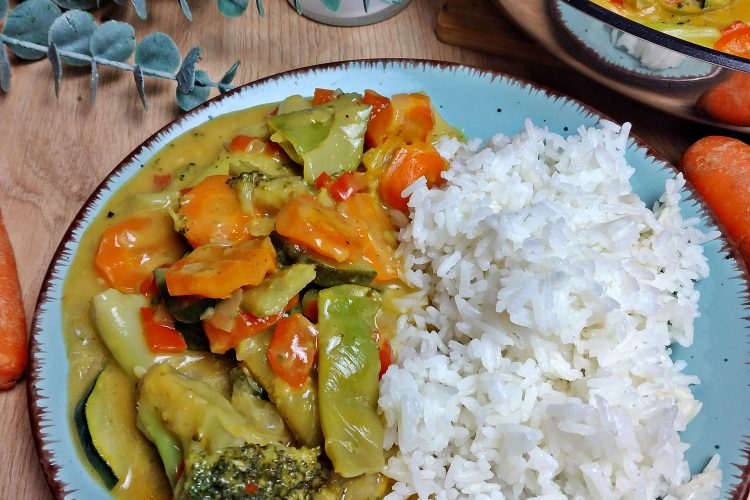 Reis mit Kokos-Gemüse-Curry