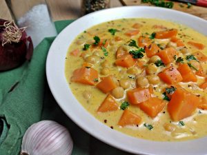 Die Süßkartoffel sorgt hier für eine natürliche Süße und eine cremige Textur, während die Kichererbsen Protein und Ballaststoffe liefern.